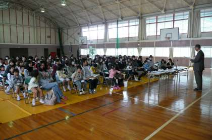 お母さんやお父さんといっしょに元気よく玉川小学校にやってきました。