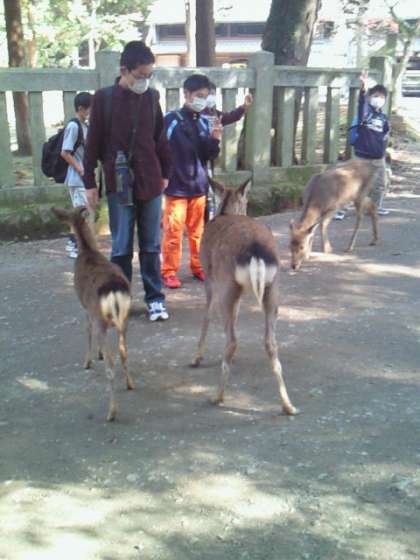 東大寺の大仏様に感動した後は、鹿とのふれあいタイムです。 白銀屋さんの昼食を楽しみに、鹿通りを歩きます。