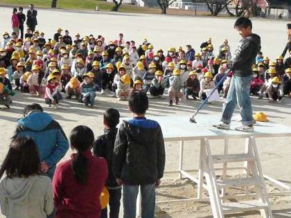 美化委員が、掃除道具の使い方を全校児童に教えてくれました。