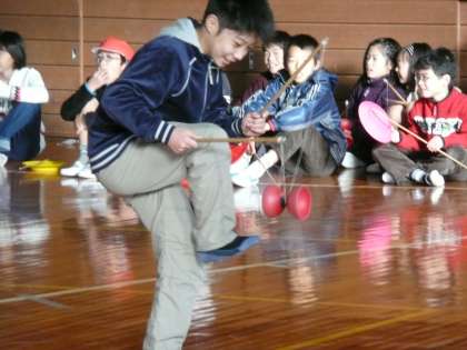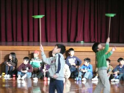 ジャグリングクラブでは、皿まわし・ジャグリングこま・シガーボックスなどを使って、練習を重ねればいろいろな技ができる楽しいクラブです。