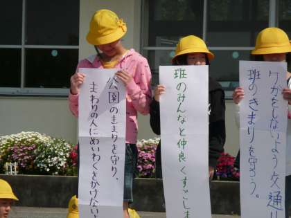 4月30日(金)、またとない爽やかな青空の下、都市緑化植物園へ遠足に出かけました。生活班毎に目標を持ち、高学年の子どもたちは低学年の子どもたちを上手にリードしてホステリングに取り組むことができました。