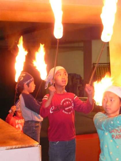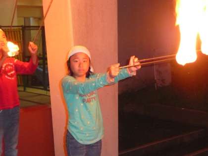 5月19日(木)、キャンプファイヤーといえばトーチトワリング。いつの間に練習したのでしょうか、8名のトワラーが息のあったトワリングを演出しました。幻想的かつ力強い炎の舞は、子どもたちの心にいつまでも残ることでしょう。