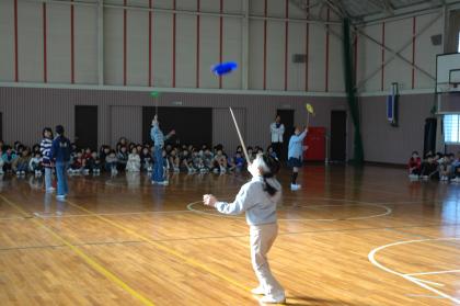 ジャグリングクラブによる児童集会が、12月18日に開催されました。