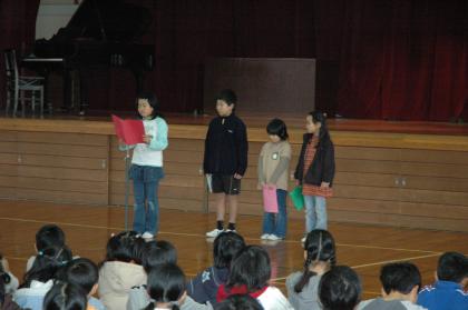 12月22日 2学期の終業式が、行われました。校長先生のお話の後、2年生と5年生の児童が2学期頑張ったことを全校児童を前に立派に発表できました。楽しい冬休みになりますように。