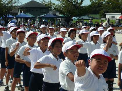 9月25日(土)運動会の応援合戦の様子です。今年も優勝を目指す赤組と、今年こそ優勝しようと必死の白組が、熱のこもった応援合戦を披露しました。応援合戦