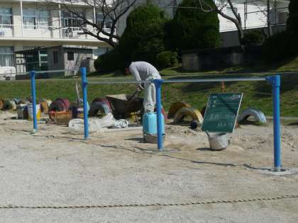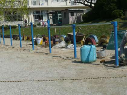 しばらく、コンクリートを乾かす必要がありますが、もうじき子どもたちが鉄棒で体を鍛えることが出来るようになります。
