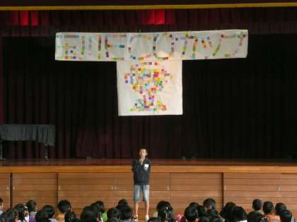 10月23日(土)、児童会のメインイベントの一つである「玉川祭」を開催しました。本年度のテーマは「玉川ECOカップ」で、エコに関するクイズやゲームを生活班別に考え、みんなで役割分担をして活動に取り組みました。