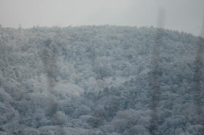 今年の冬は,まれにみる暖冬でしたがなんと今朝(3/12)なごり雪が降りました。(校舎4階より北側木附方面をのぞむ)