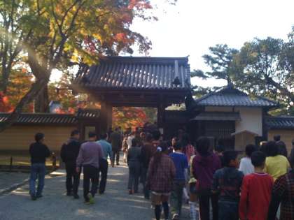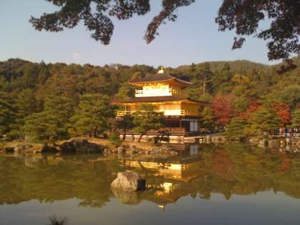 紅葉の始まった金閣寺です。鏡湖池に映る金閣の姿にうっとりと見とれてしまいました。