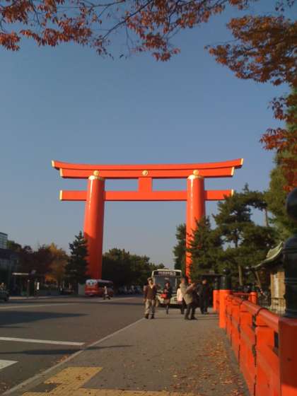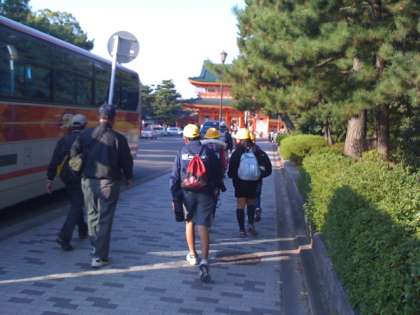 約20分遅れて平安神宮に到着です。今から班別行動。清水寺のゴールめざし、全員で協力して行動開始です。