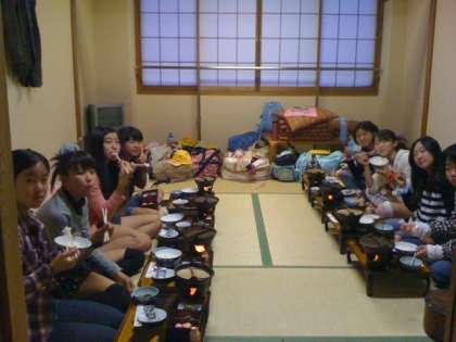 本能寺会館での夕食の様子です。部屋ごとにおいしくいただきました。
