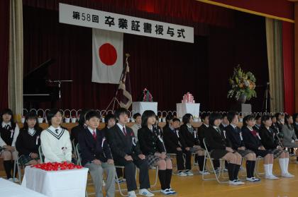 3月20日(火),第58回卒業式が,開催されました。天気もよく,絶好の卒業式となりました。感動を胸に48名の卒業生が巣立っていきました。卒業生の前途に幸あれ