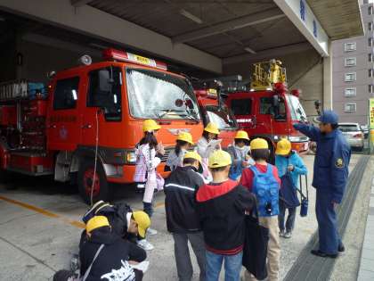 11月17日(水)4年生が、春日井消防署「高蔵寺出張所」の見学に行きました。玉野郵便局前から、往復名鉄バスに乗り、自分で料金を支はらう体験もしての見学でした。消防署では、消防車や救急車の見学をさせていただきました。とても親切な説明で、消防署の働きや大切な仕事の内容が良くわかりました。