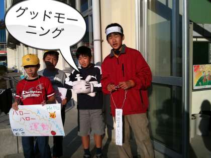 児童会 ハローハロー運動 公開日 2010/11/26 更新日 2010/11/26 学校の様子 今週は、児童会の提案で「ハローハロー運動」を、登校の時間に行っています。朝の挨拶は気分の良いものですし、一日の元気の源です。「ハロー」「モーニング」が飛び交った今朝でした。