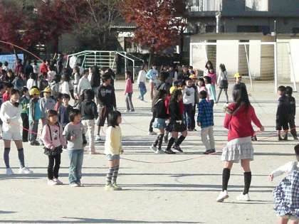 先週11月30日(火)より全校で、なわとび運動をしています。先週は、個人で短縄を使って、長く跳んだり、二重跳びにチャレンジしたりして、寒さに負けない体を作ろうとしました。今週12月7日(火)からは、学級単位で長縄にチャレンジしています。長く続けて跳んだり、ダブルダッチで跳んだりしています。低学年には、高学年の児童がお手伝いに入り、ともに楽しんでいます。
