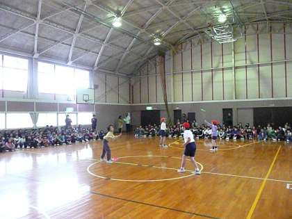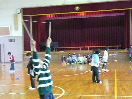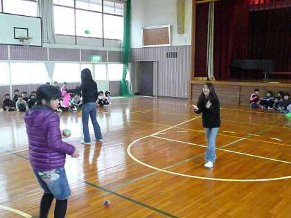 発表の様子です。ディアボロ(中国独楽)では、天井近くまで飛び上がり大歓声でした。