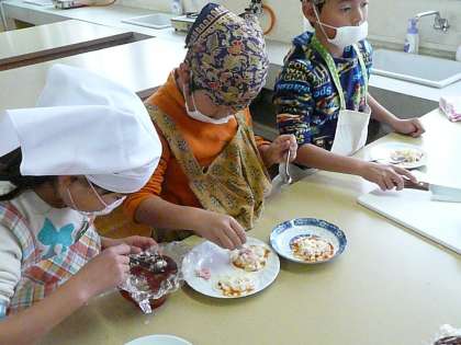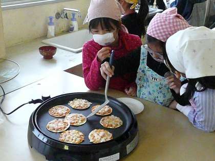焼き上がったピザはとってもおいしかったようです。みな満足そうな顔です。