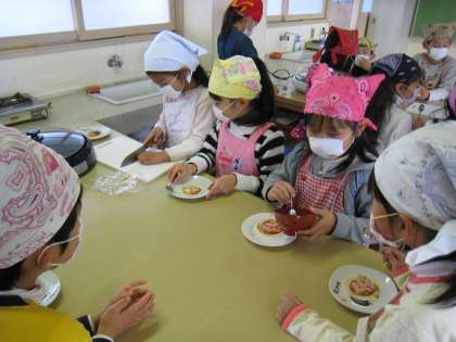 12月15日(水)先日に引き続き、2年2組が生活科でのピザ作りに挑戦しました。2組の児童も、一生懸命材料を切り、盛りつけました。ホットプレートで焼くときにはどきどきしていました。