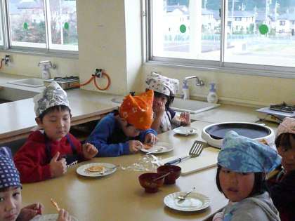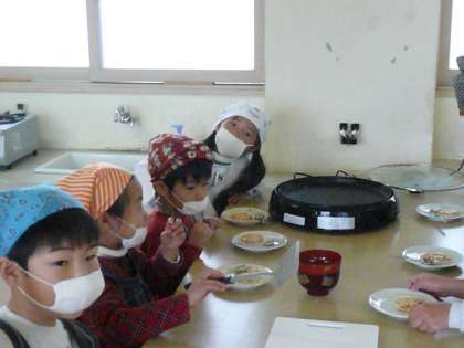 焼き上がったピザを、みなでいただきました。本当においしいピザでした。