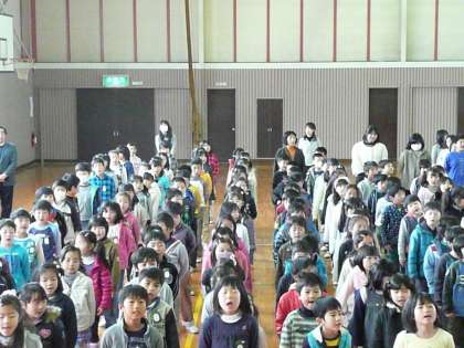 平成23年3月24日(金)修了式が行われました。1年生から5年生まで342名に修了証が渡されました。今年度の課程を全員無事に終了いたしました。この一年、学校や児童を暖かく見守っていただきました地域の皆様やご家庭の皆様に感謝いたします。修了式で学校長からこの一年間で成長したことや、4月から進級する気持ちの持ち方についての話がありました。その後、4年と1年の今年頑張ったことの発表がありました。1年生は発表者がインフルエンザで登校できなかったので、担任が代読しました。元気よく校歌斉唱後、春休みの生活について担当者から注意を受けました。教室で修了証「あゆみ」をもらい元気に下校しました。4月に全員の元気な顔が揃うことを待っています。今年度玉川小学校への協力有り難うございました。