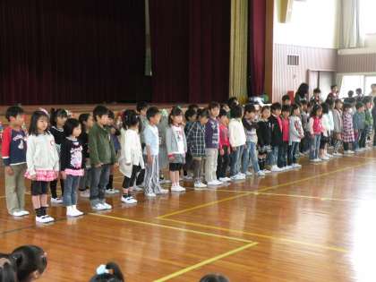 今日は、全校児童が体育館に集まって「おめでとう集会」が開かれました。