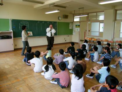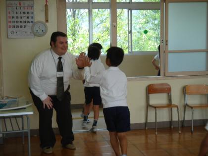 大きな体でしなやかな動き、ジェスチャーたっぷりの英会話の授業は、子どもたちにも人気があります。