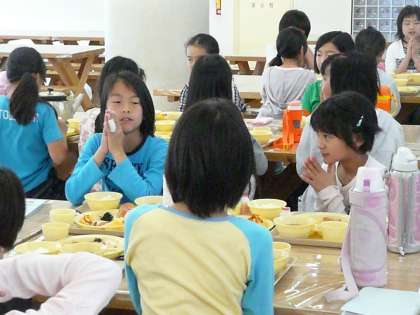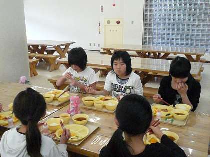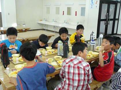 朝食の様子です。ちょっぴり眠たそうな顔も見えますね。