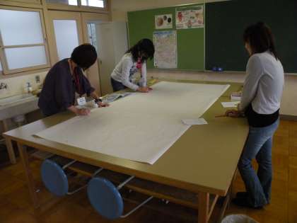 大きなB紙に絵を描き、色づけをしていきます。集まった皆さんが一生懸命に活動して見える姿に、本当に感謝、感謝です。