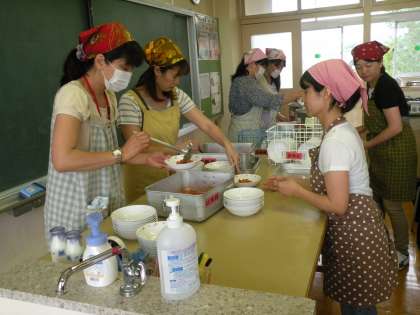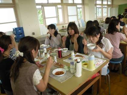 ふれあい教育セミナー 給食試食会 公開日 2011/06/17 更新日 2011/06/21 PTA活動 第3回ふれあい教育セミナーとして、本日「給食試食会」を行いました。 藤山台調理場から栄養士さんにきていただき、学校給食についてお話を伺い、その後試食会を行いました。今日のメニューは米粉パン、具だくさんのスープ、チキンのトマトソース和え、牛乳でした。
