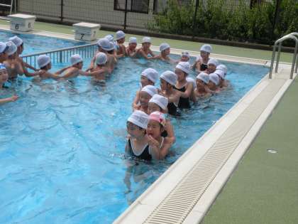 水泳指導 1年 公開日 2011/06/23 更新日 2011/06/23 お知らせ 梅雨の晴れ間、気温も30度を超えそうな勢いであがっていきました。 1年生にとっては、玉川小学校での初めてのプール指導です。みんなで仲良く並んで小プールの中を歩きました。水しぶきに大はしゃぎでした。