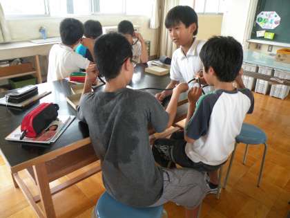 6年 理科授業 公開日 2011/06/24 更新日 2011/06/24 学校の様子 6年生は今、理科の授業で動物の体の仕組みを勉強しています。 今日は、心臓の音を聴診器で聞いて、鼓動の早さを確かめました。