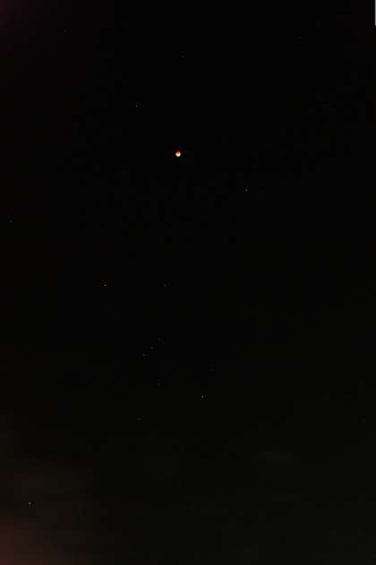 皆既月食 見えました〜 公開日 2011/12/12 更新日 2011/12/12 玉川小の自然 10日(土)夕方から雲も多く時折小雨が降るあいにくの天気でした。 この時点であきらめた人も多かったようですね。でも、時折雲間から欠けていく 月の様子も見えましたし、皆既の頃には雲も晴れてしっかり赤銅色の月を見るこ とができました。 写真は、少年自然の家の駐車場で撮影したものです。