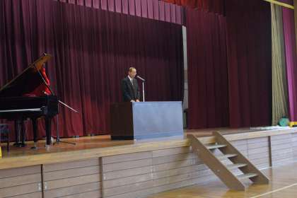 長かった二学期もいよいよ終わりです。今日、全校児童が体育館に集まり二学期終業式が行われました。
