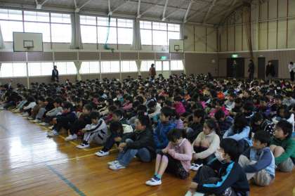 校長先生からは、今年起こった震災をもとに「絆」についてお話がありました。また、冬休み中の生活についてお話があり、三学期始業式には全員元気に登校しましょうとお話しされました。