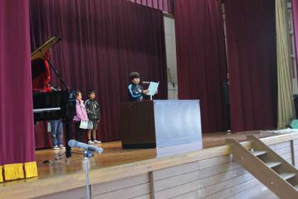 その後、2年生と5年生の代表が二学期にがんばったことの発表をしました。