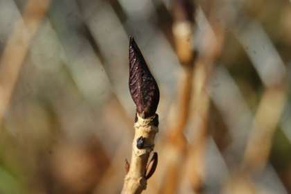 校庭で見つけた春を待つ植物です。冬の間「冬芽(とうが)」といって、小さなつぼみになって春を待っています。