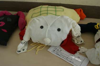 家から持ってきた服や靴下など様々な布から、思い思いの生き物を作り出していました。