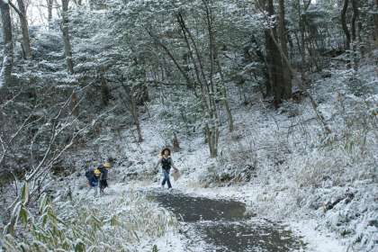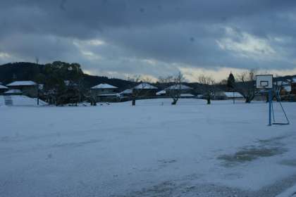 この冬二度目の積雪でした。気温が高めで少ししめった雪がうっすらと運動場を覆っていました。