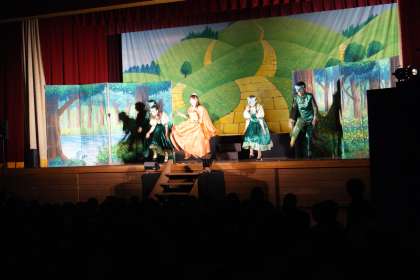 「ドロシー」とドロシーを助ける「かかし」「ブリキ」「ライオン」の友情と一生懸命にやれば誰でも夢が叶うといったお話でした。ご家庭でも、今日の劇の内容について親子の話し合いがもてるといいですね。
