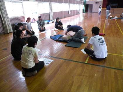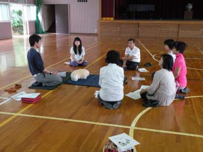 PTAの講習会の後、先生たちも毎年行っている心肺蘇生講習とAEDの講習を受けました。毎年やっているとはいえ、どうしても忘れてしまっていることもあります。