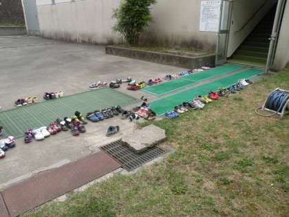 今日は3年生が合同でプール指導をしていましたが、子どもたちは入り口で靴をきれいに並べて建物に入っていきます。