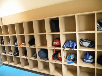 階段を上がって左に回ると、更衣室とトイレがあります。どちらも自然採光がされておりとても明るい室内です。ここで着替えて室内にあるシャワーを通ってプールサイドへ行きます。