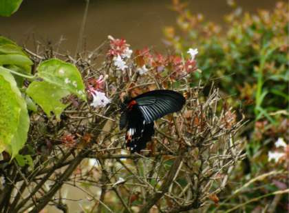 先日、学校の体育館付近でナガサキアゲハを見かけました。ナガサキアゲハは名前の通り以前は関西以西にしか生息していなかった蝶ですが、温暖化のためか最近は関東付近でも繁殖が確認されています。