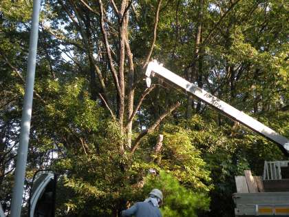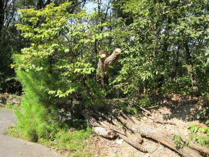 この周辺もコナラの木が、病気で枯れていることが多く強風が吹くと落下したり倒れたりする心配がありました。今回特に心配な木について伐採していただきありがたく思っています。