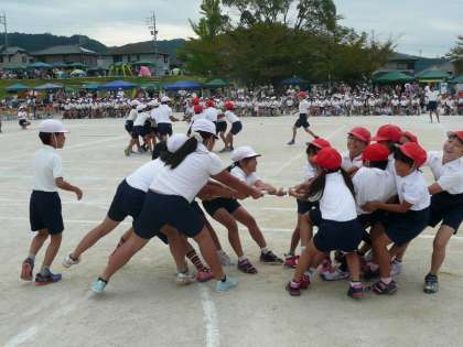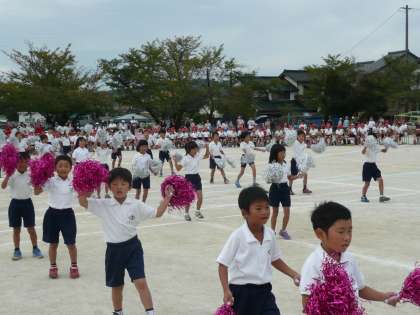 1・2年生「生きてる生きてく」とってもかわいく踊りました。 4年生とられてたまるかみんなで「引っぱれ棒」 68対68 今年は紅白両方優勝でした。