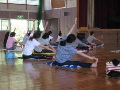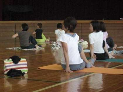 PTA活動 心と体のリラックス 公開日 2012/10/15 更新日 2012/10/15 PTA活動 10月9日(火)玉川小体育館にて、「骨盤矯正とリラクゼーションヨガ」というテーマで第6回ふれあい教育セミナーが開催されました。講師にフィットネスインストラクターの稲田有希子先生をむかへ、自宅でも無理なくできる「心と体の調整法」を教えていただきました。20名の参加者からは、ぜひもう一度参加したいという声が多く聞かれ大好評でした。