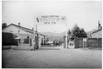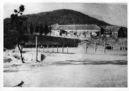 玉川小学校 校舎の歴史 公開日 2012/10/21 更新日 2012/10/21 校長室より 昭和23年、現在の自衛隊の中に高座小学校東部分教場が開かれ、翌24年この分教場を母体に玉川小学校が開校しました。戦時中の陸軍補給廠高蔵寺部隊の建物を使っていました。 しかし、昭和27年アメリカ軍が進駐してきて接収されたため、これより8ヶ月玉野、木附、外之原に分散して授業をしていました。 1枚目が一番最初の玉川小学校の校舎です。 2枚目は進駐軍の基地になったときの様子です。