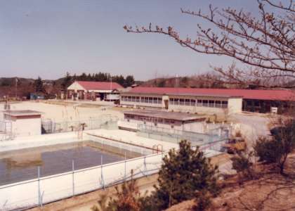 写真は、プレハブ教室が写っていますので現在の校舎の建築間近の写真だと思います。