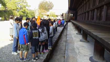 修学旅行3 三十三間堂 公開日 2012/11/07 更新日 2012/11/07 学校の様子 みんな元気に京都につきました。最初は、三十三間堂です。射られた矢も発見!少し風がありますが、気持ちのいい天気です。