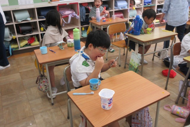 最初、衛生士さんが、「歯ブラシ忘れた人!」と聞いていたから、